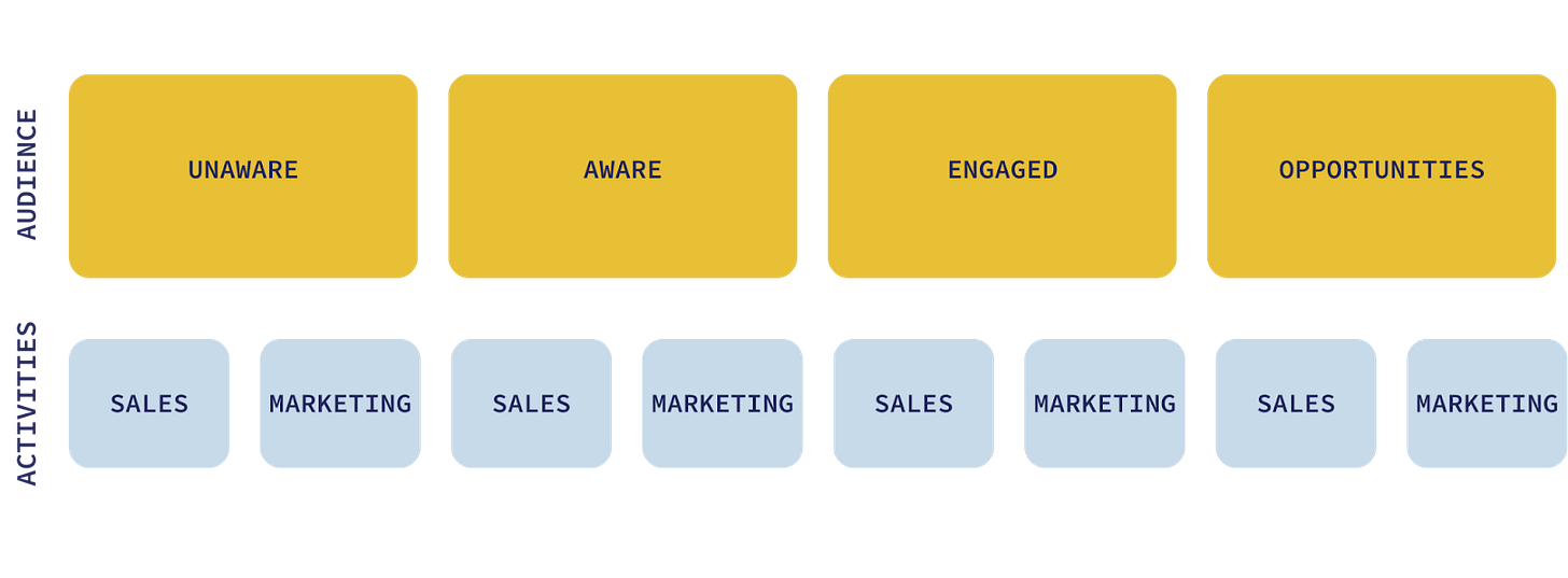 Pro Tip from Mark: Map your sales and marketing activities (together) to the appropriate audience and stage of the buyer journey. Clarity here unlocks action.